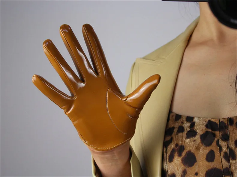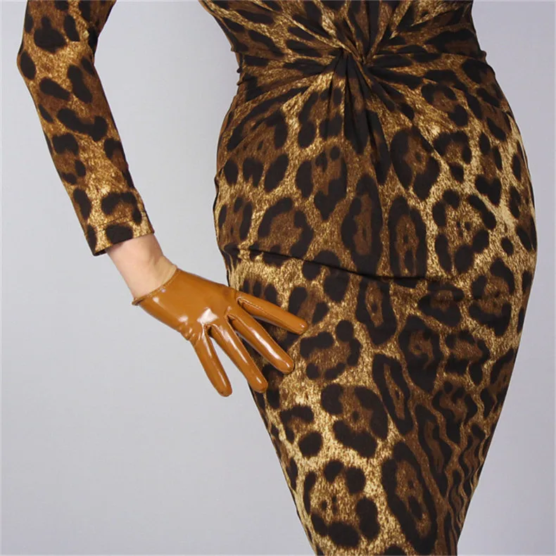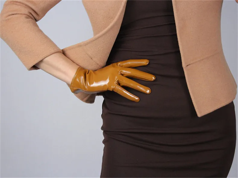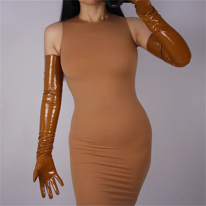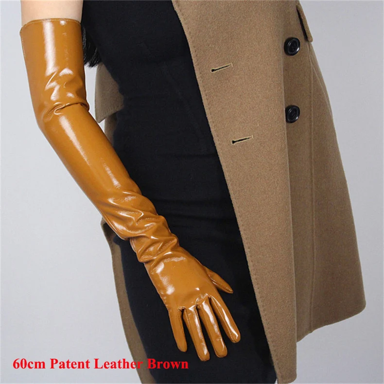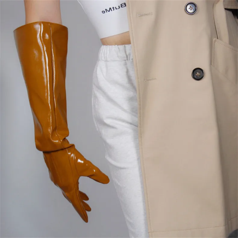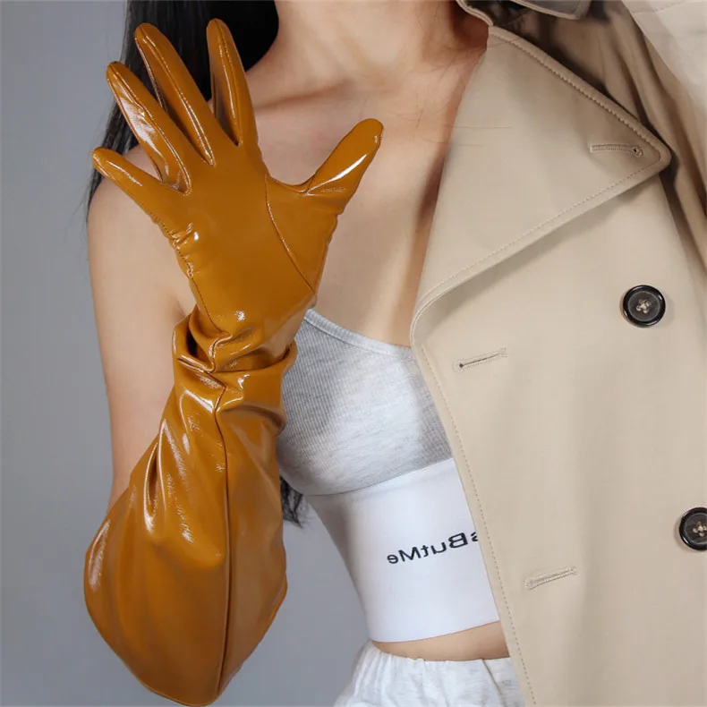 Длинные перчатки из лакированной кожи, 50 см, длинные, эмуляционные, яркие, глянцевые, зеркальные, яркие, коричневые, карамельные, WPU85