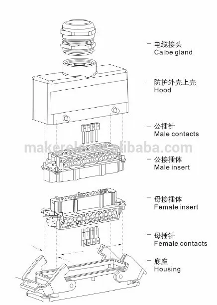 MK-HE-016-3 | 16А | 400/500 в | Винтовой терминал/пружинный терминал/обжимной терминал | M25, PG21, PG29, M32 | 16 |