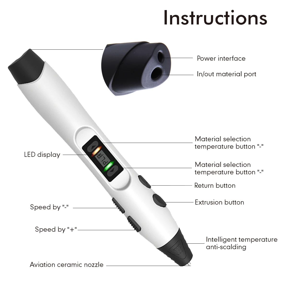 Особенности SL-300 3D ручки: 1. ЖК-дисплей, установка программы/температуры в любое время и в любом месте, удобный и быстрый; 2. Первая в мире интеллектуальная нагревательная насадка с датчиком температуры; 3. 8 уровней цифрового контроля скорости, более точная скорость разряда; 4. USBA--DC интерфейс питания, может быть подключен к внешнему источнику питания; 5. Сопло вставного типа, который легче поддерживать; 7. Запатентованное сопло, без подключения; ![]() ![]()