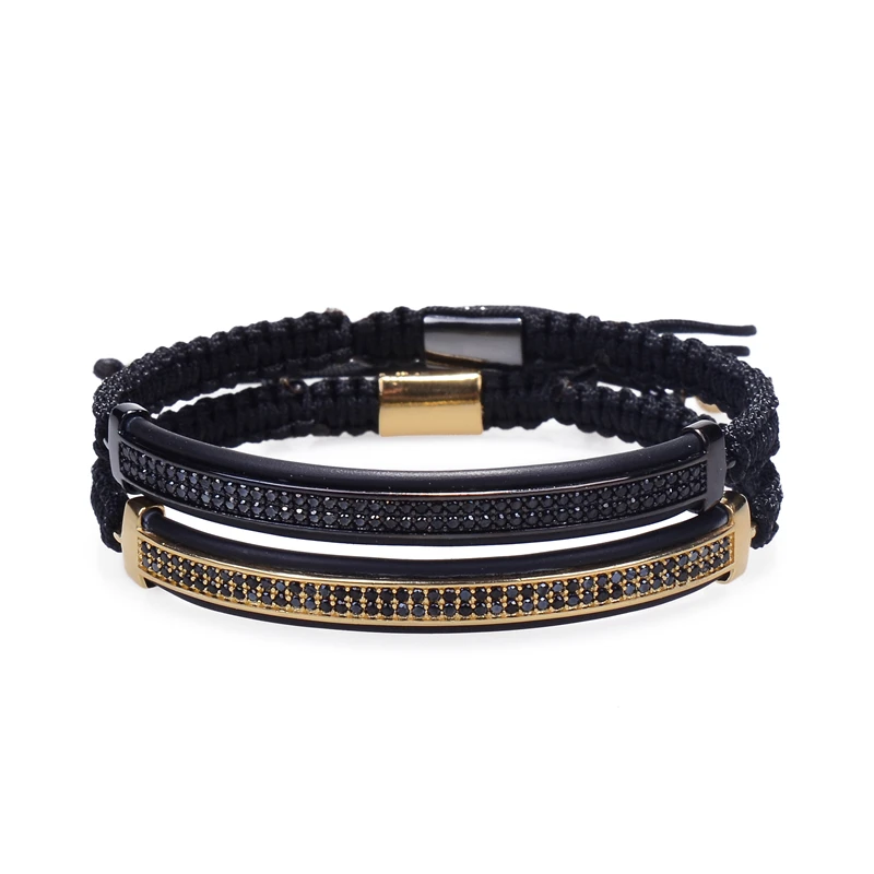 ATTYIRENA модные ювелирные изделия микро проложить черный Cz Двойной длинной трубки часы протектор веревка макраме браслет для мужчин Pulseira Masculina