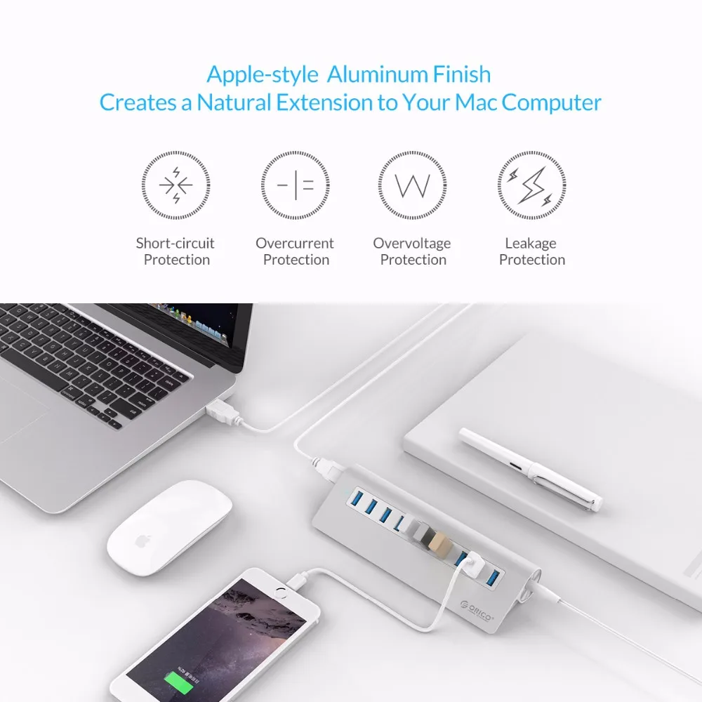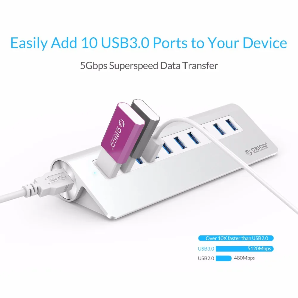 Установите порты USB на задней стороне, скрывайте кабели, что делает вашу Рабочий стол чище. Концентратор ORICO USB 3,0 экономит пространство, эффективно