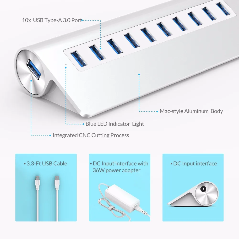 Алюминий 7 10 Порты и разъёмы USB3.0 концентратор