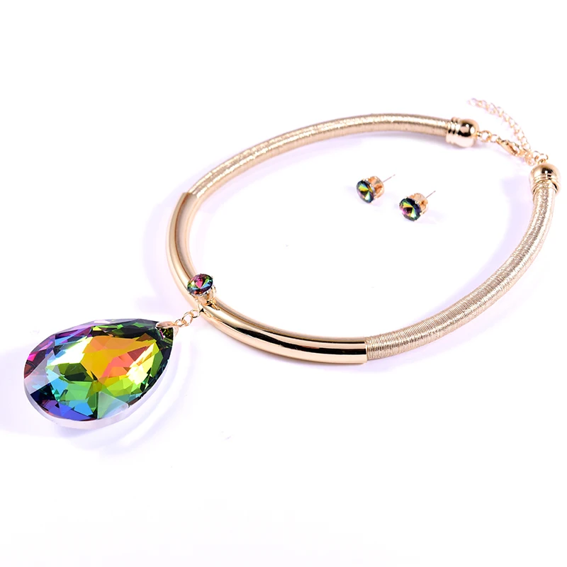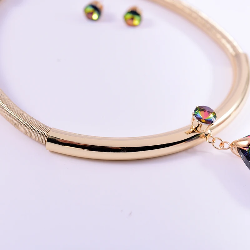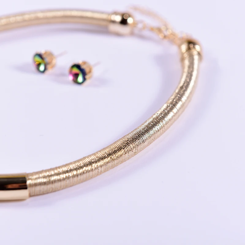 XT QU новый комплект ювелирных изделий с цвет золотистый колье серьги кольцо и