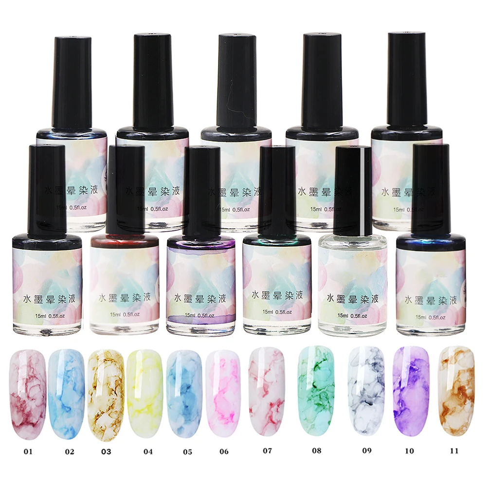 Фототерапия, лак для ногтей, мраморный узор, чернила, градиентный маникюр, размазывание