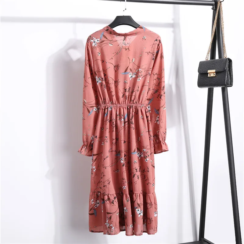Женское шифоновое платье с высокой талией, повседневное однотонное платье с длинным рукавом и бантом, весна-осень 2019