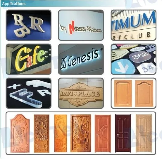 Индустрия применения: Обработка камня, резка пресс-форм, обработка древесины, художественное и ремесленное производство, резка легких коробок, резка строительных форм, внутренняя отделка, обработка волновой доски, легкое оборудование для формования резки, вывески и маркировки производства резки, акрил доска и MDF обработки резки, штамповки резки.