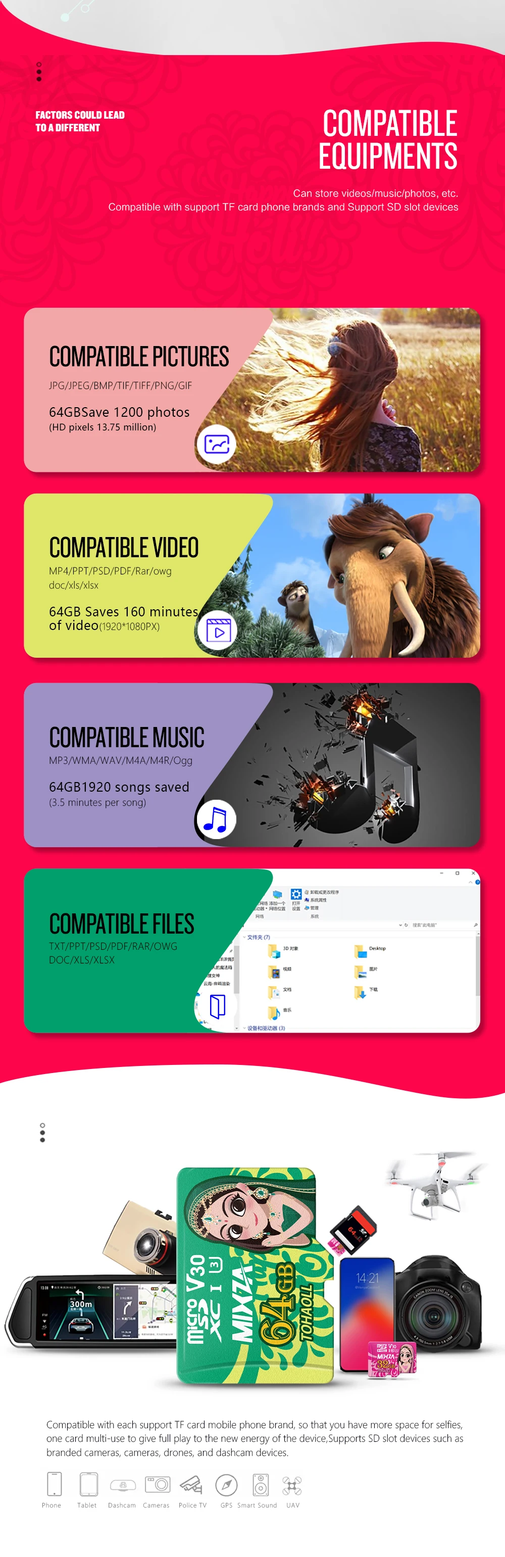 16 Гб U1 Класс скорости 10, максимальная скорость чтения до 48 МБ/с.32 Гб U1 Class10 скорость = максимальная скорость чтения до 60 МБ/с.64 Гб U3 Class10 скорость = максимальная скорость чтения до 80 МБ/с.128 ГБ U3 Class10 скорость = максимальная скорость чтения до 80 МБ/с.256 ГБ U3 класс 10 скорость = максимальная скорость чтения до 80 МБ/с.Вышеуказанные тестовые данные основаны на(ATTO Disk Benchmark)Результаты испытаний.Фактическая скорость тестирования должна быть основана на уровне устройства чтения карт или компьютерном предлоге.Попросите покупателя проверить в максимально возможном порядке.Устройство для чтения карт USB 3,0.И порт USB3.0 для компьютера.(Бесплатные картридеры нашего магазина имеют уровень USB2.0,Поэтому они не могут соответствовать этому стандарту)О емкости: