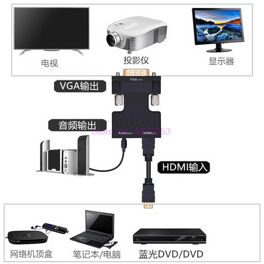 Features: brand:cnstic ◇ The complete HDMI signal is converted to VGA output ◇ Support digital signal to analog signal conversion ◇ Support HDCP support 1.0 / 1.1 / 1.2 / 1.3 version ◇ Installation fast, easy to operate, no need to set ◇ Built-in conversion chip, support hot-swappable. ◇ HDMI video input format: 480i / 576i / 480p / 576p / 720p / 1080i / 1080p ◇ VGA video output format: 480i / 576i / 480p / 576p / 720p / 1080i / 1080p Description: This HDMI to VGA converter, the output VGA signal can be sent to the CRT / LED display, and the projector, enter the HDMI signal can be connected to PS3, XBOX360, Blu-ray DVD, HD set-top boxes, etc., the output VGA can be connected to home CRT / LED display, HD TV TV VGA-IN, projector VGA-IN, etc., can be convenient for HD TV HD TV friends to solve the moment of worry. Using digital conversion chip, only the HDMI signal to VGA signal, not to narrow the signal, zoom and other technical processing, HDMI output up to 1080P / 1.3, the output and output exactly the same (point to point output). The use of digital-analog conversion chip, high-definition high-speed HDMI video signal can be converted into analog signals, while the audio decomposition, so that ordinary display experience more high-definition video brings pleasure. Support resolution: 800 * 600,1024 * 768,1280 * 720,1280 * 1024,1920 * 1080