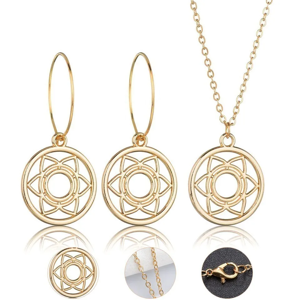 Женские модные серьги и ожерелье, ювелирный набор, круглые и геометрические женские ювелирные изделия, Женская Золотая цепочка, свадебные ювелирные наборы