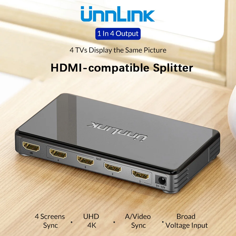 Бренд: unnlink Название: HDMI-совместимость 1 в 4 Out Lnput: 1 * HDMI-совместимый порт Выход: 4 * HDMI-совместимый порт Корпус: АБС-пластик Разрешение: 4K Размер: 146*70*20 мм Посылка: коробка