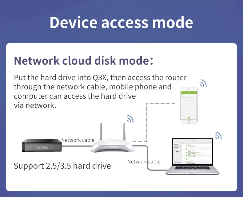 Airdisk Q3X Беспроводной сети Портативный корпус жесткого диска Q3X USB3.0 SATA для 2,5/3,5 дюймов жесткий диск SSD (не включая HDD/SSD)