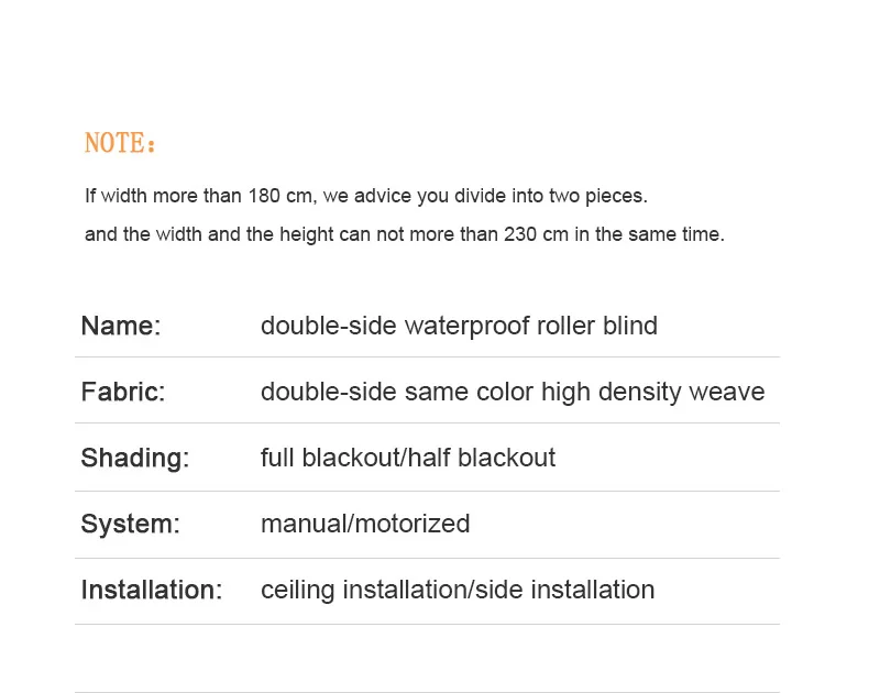 3. Пожалуйста, сообщите нам размер жалюзи, а не размер ткани (включая ширину механизма);
