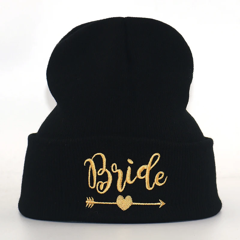 warm beanies for bride and maid fashion winter hat cotton black knitted beanie hats sweet honeymoon cap | Аксессуары для одежды