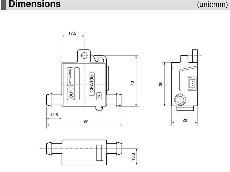 Импортный японский Azbil микро Датчик потока, поток 0-300 мл в минуту измерения диапазона, напряжение питания 5 В, изменение выходного напряжения сигнала с расходом, большое напряжение потока сигнала, 0 подачи сигнала выходное напряжение 0,5 V.