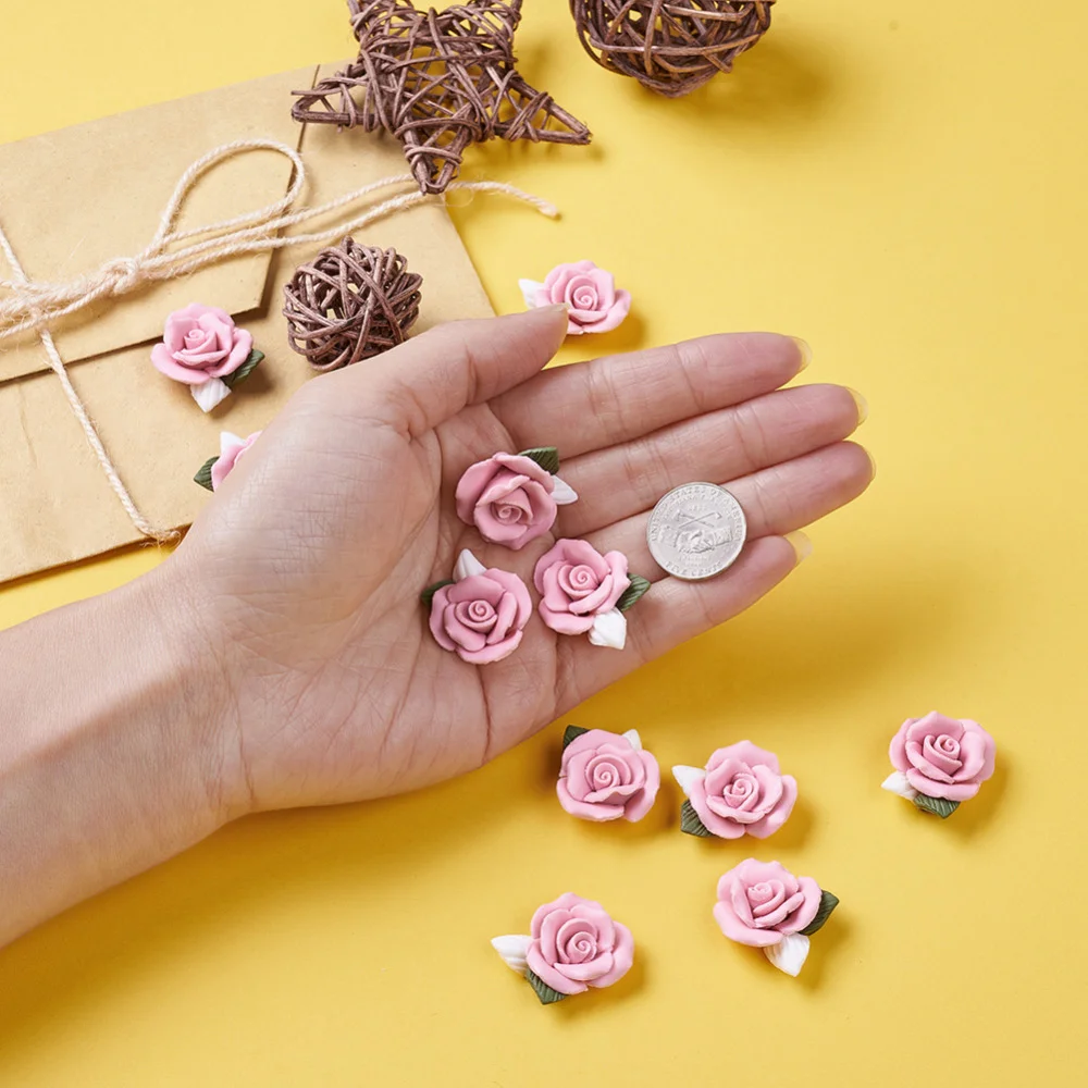 50 шт. фарфоровые кабошоны ручной работы, Китайские глиняные бусины, цветок, розовый/помидор/персиковый буфет