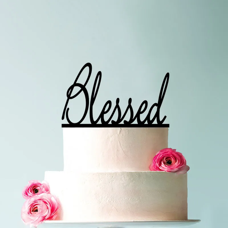 Свадебный торт с надписью «Blessed», романтическое свадебное украшение для торта на выбор, современный элегантный свадебный торт