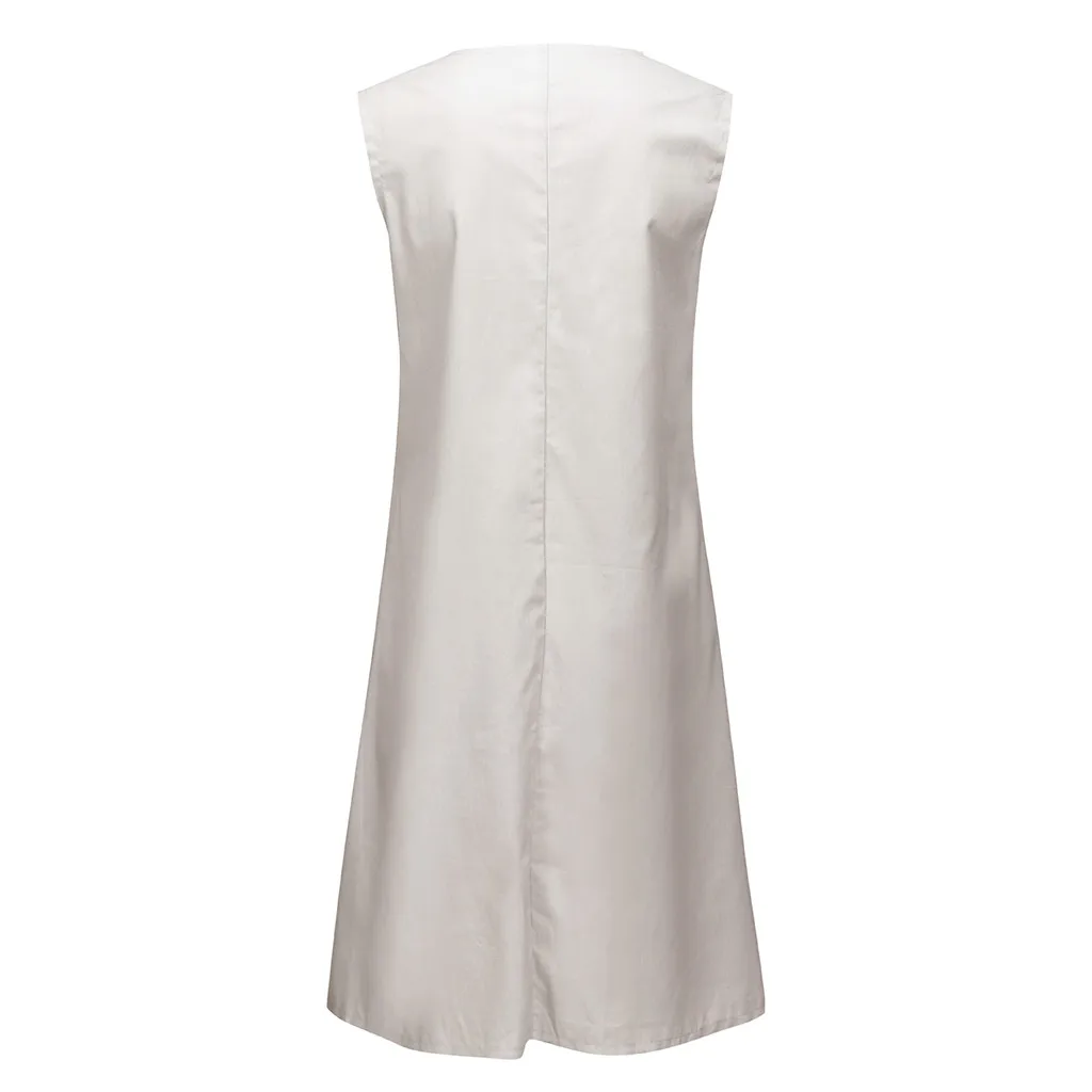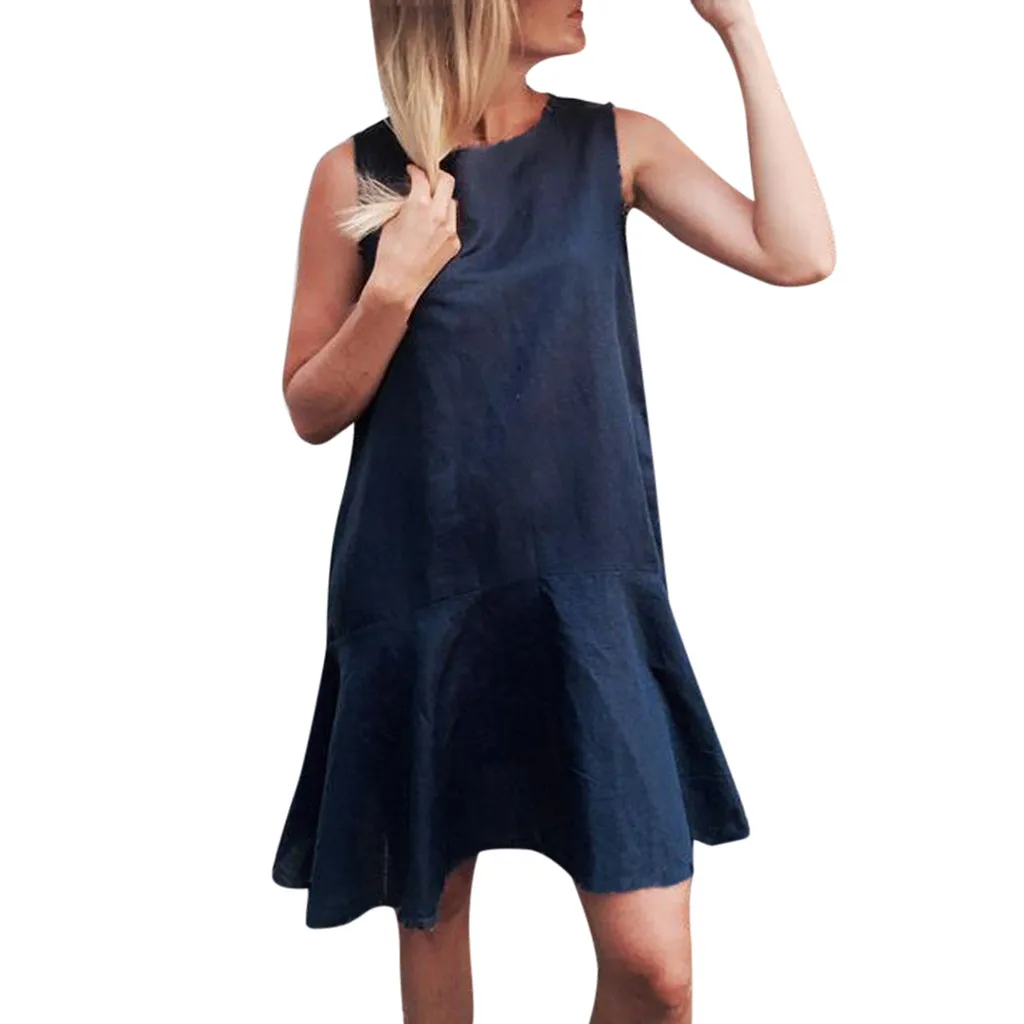 Модное женское повседневное платье в стиле ретро с коротким рукавом и круглым вырезом из хлопка и льна