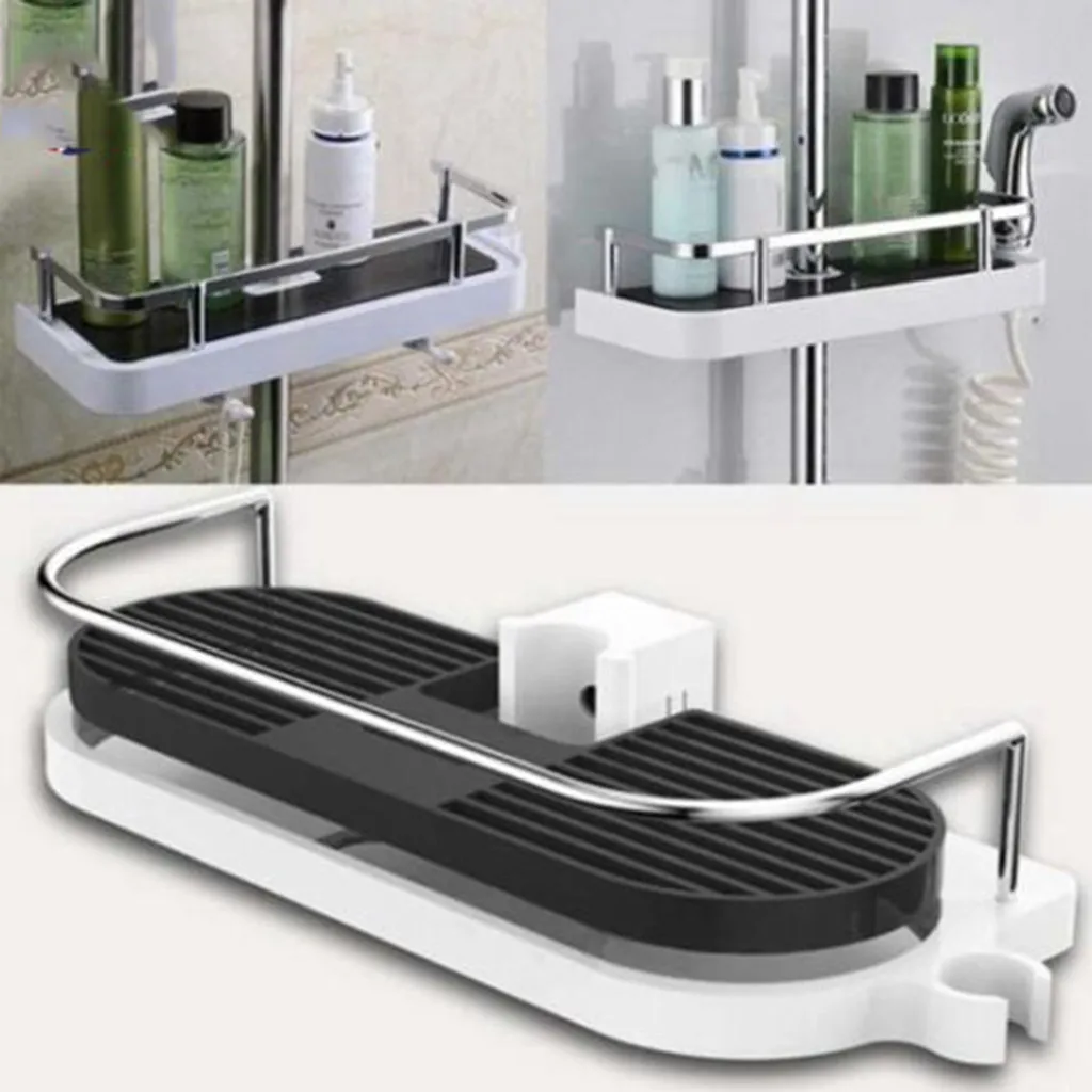White Largre Bathroom Pole Shelf Shower Storage Caddy Rack Organiser Tray Holder Features: Made of ABS material, chrome plated surface, not easy to rust and durable in use. Hollow out design for water draining, keep the storage shelf dry and clean. Buckle design for easy installation, drill and glue are not needed. Fix the storage shelf on shower rod, suitable for 24mm hole in diameter. Practical and convenient bathroom accessory to place shampoo or shower gel. Specifications: Condition: 100% Brand New Material: ABS Surface Treatment: Chrome Plating Color: Showing as picture Working Temperature: 80° Size: approx. 30 x 12cm / 11.81 x 4.72inch Fit for shower rod: 24mm in diameter Weight: approx. 288g Package Included: 1 x Bathroom Storage Shelf Installation Instruction: 1.Disassembly the white installation accessory. 2. Place the storage shelf on the proper position of shower rod. 3. Fix the white accessory from behind till fully buckled in. 4. Use a screwdriver to screw up from the bottom of the storage shelf.