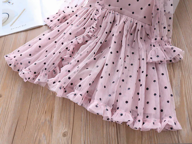 girl tulle dress long sleeve Dot ruffles girls vintage dress birthday kids dresses for girl's clothing boutiques children frock | |||