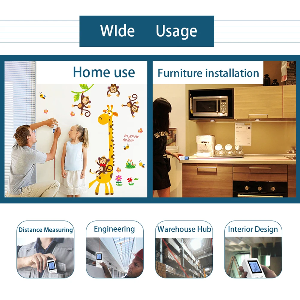 1. Высокая точность: Этот цифровой ИК-дальномер обеспечивает точные и быстрые результаты измерений, чтобы удовлетворить ваши требования к измерениям. Цифровой измерительный измерительные рулетки с 0,1 футов до 100 футов с точностью до 3 мм, что очень быстро, точной и эффективной.
