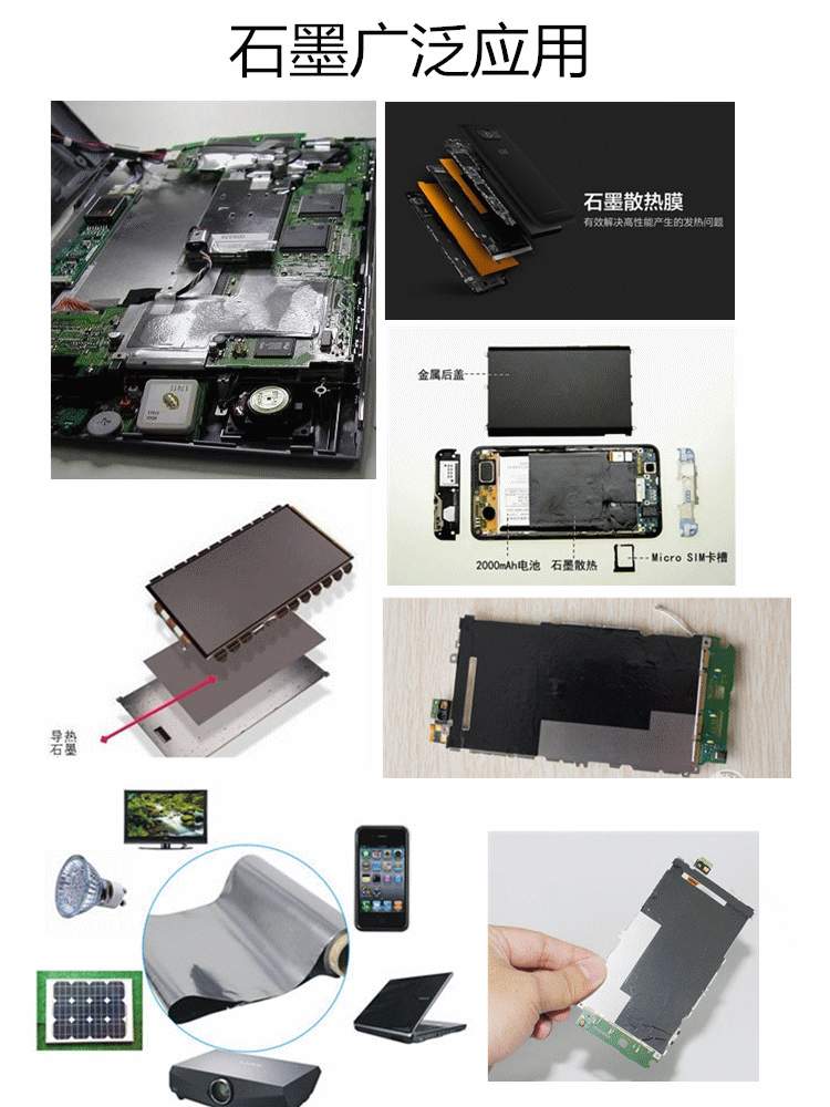Теплопроводящий графитовый лист, также известный как графитовый теплоотвод, является новым теплопроводным и теплоотводящим материалом с уникальной ориентацией на зерно.УровеньРавномерная теплопроводность в направлении, ламеллярная структура может быть хорошо адаптирована к любой поверхности, экранирование источников тепла и компонентов, улучшая производительность потребительских электронных продуктов.В настоящее время этот продукт широко используется в интеллектуальных электронных продуктах. (например, мобильные телефоны, планшеты, цифровые камеры, Сетевые плееры, роутеры, смарт-телевизоры,LED и других отраслей промышленности)