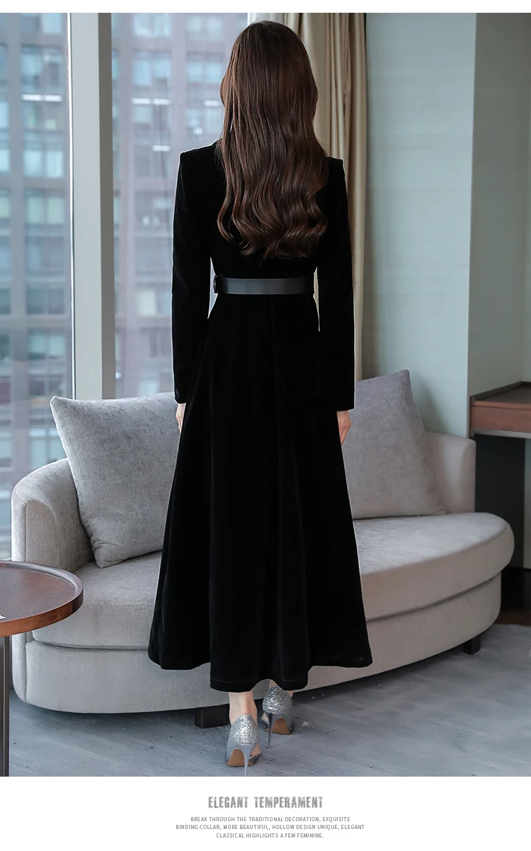 Стильная Золотая Бархатная длинная штормовка, Женская ветровка, модное пальто для женщин Ol Casaco, плащ DC411 <