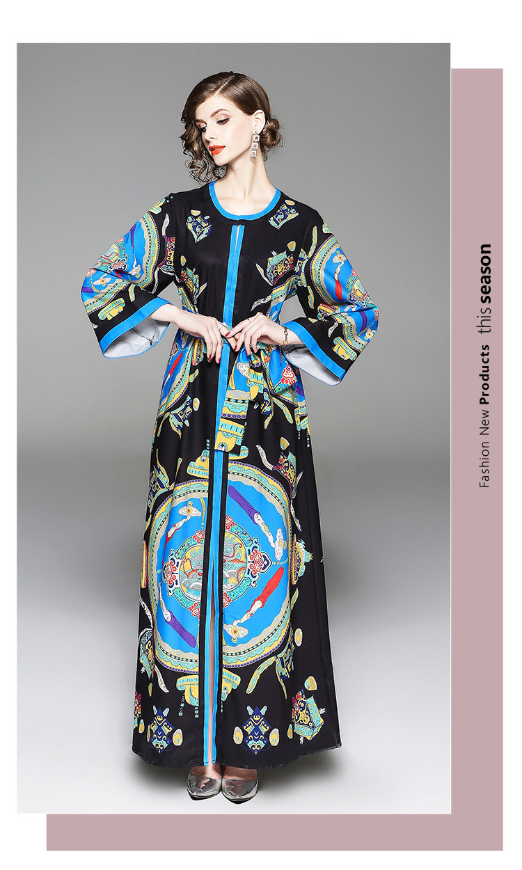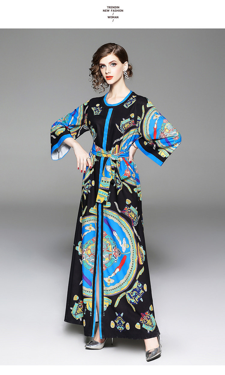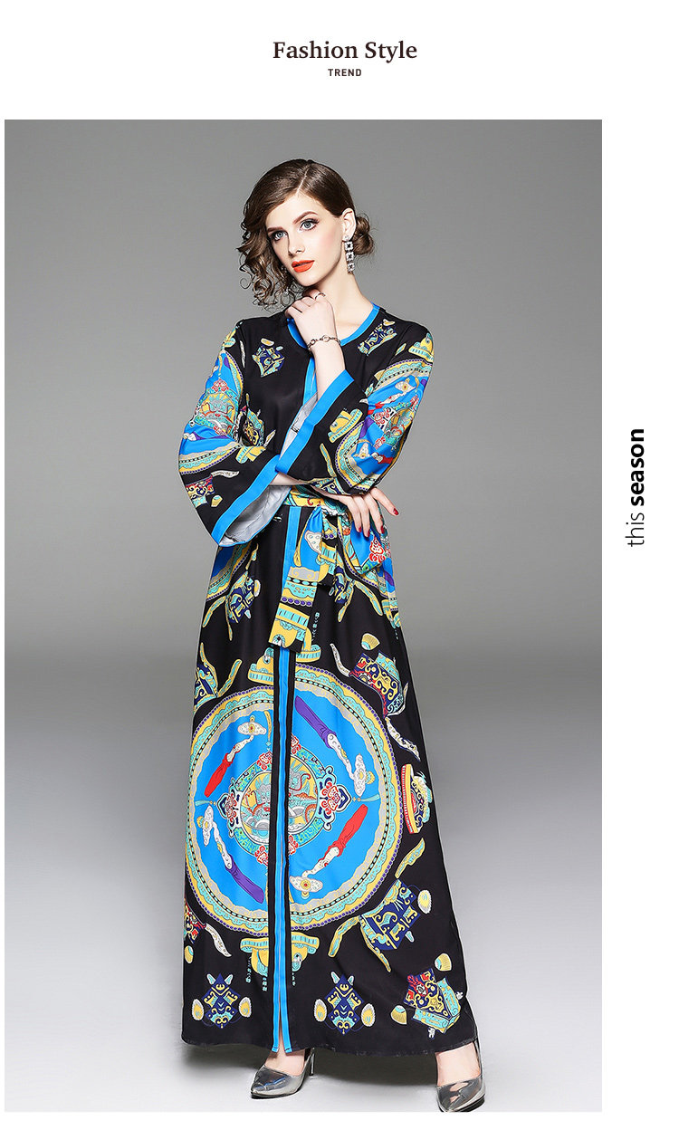 Женское элегантное праздничное платье в китайском стиле с винтажным принтом и длинным рукавом, с бантом и поясом, Платье макси с разрезом, модное уличное платье 2019 года, весенняя одежда