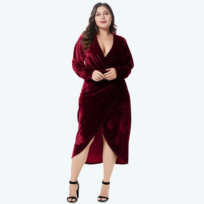 Это красивое бархатное платье с глубоким вырезом, высокой талией, разрезом по подолу и длинными рукавами, подходит как для повседневного, так и для торжественных случаев. Он разработан, чтобы сделать шикарный образ и показать вашу индивидуальность.
