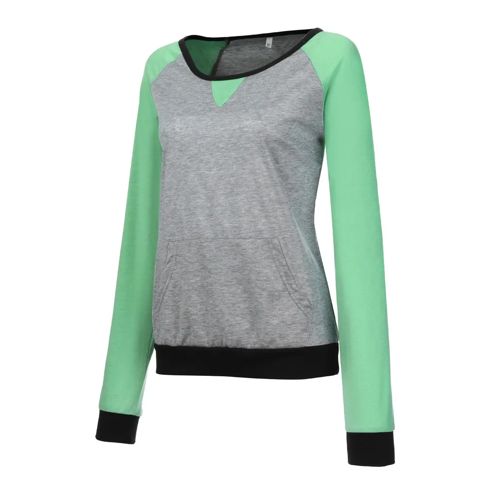 Бесплатная Страусиная женская футболка с длинным рукавом и круглым вырезом, пуловер с цветными вставками, Женские Повседневные базовые футболки, туники, топы, большие размеры