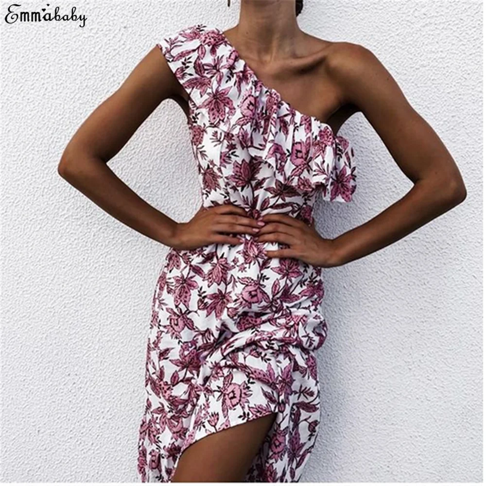 Женское платье на одно плечо с цветочным принтом | Женская одежда