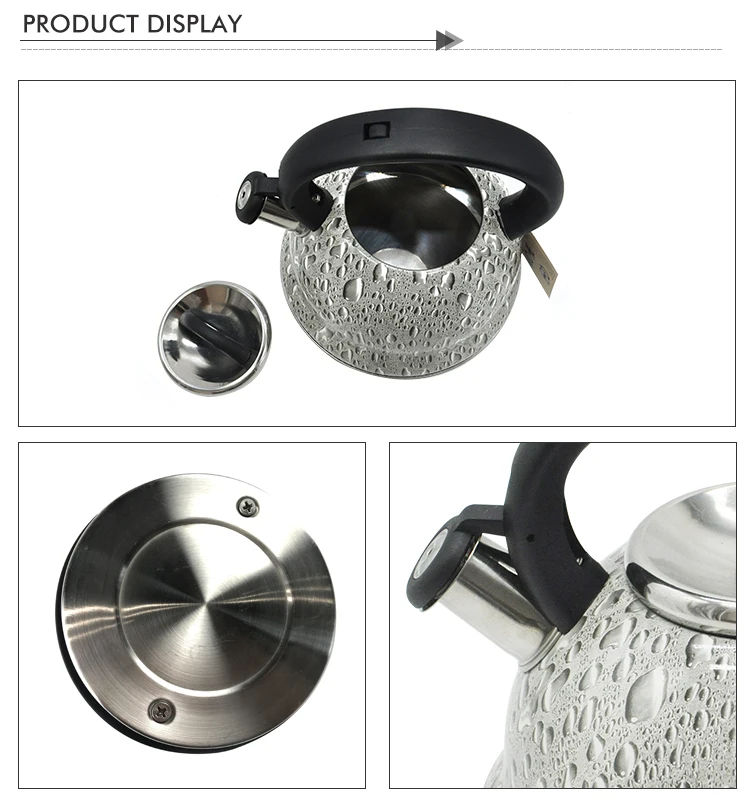 Материал: нержавеющая сталь Емкость: 3.0л Толщина корпуса: 0,4 мм Дно: 0,5 ммаль + 1,0 ммирон + 0,5 ммаль, дно капсулы, индукция костюма Внешний вид: 3D цветная живопись Интерьер: атласный лак Крышка: крышка из нержавеющей стали Ручка: пластиковая ручка Упаковка: цветная упаковка Особенности: Свист, когда вода кипит Механизм открывания носика с кнопкой Эргономичная ручка из бакелита Энергосберегающие капсульные дно Для всех плиток, включая индукцию