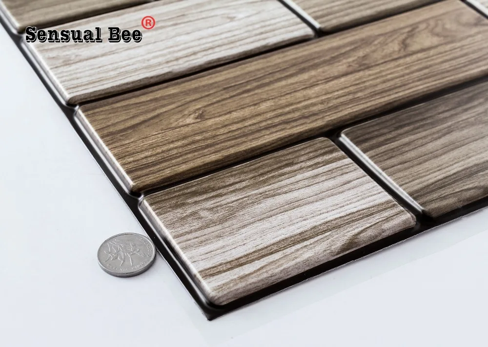 3D Wood Grain Emboss Brick Pattern Tiles Wall Sticker 30*30cm Waterproof Wallpaper For Bathroom Tile Wall Decals Vinyl Art Mural