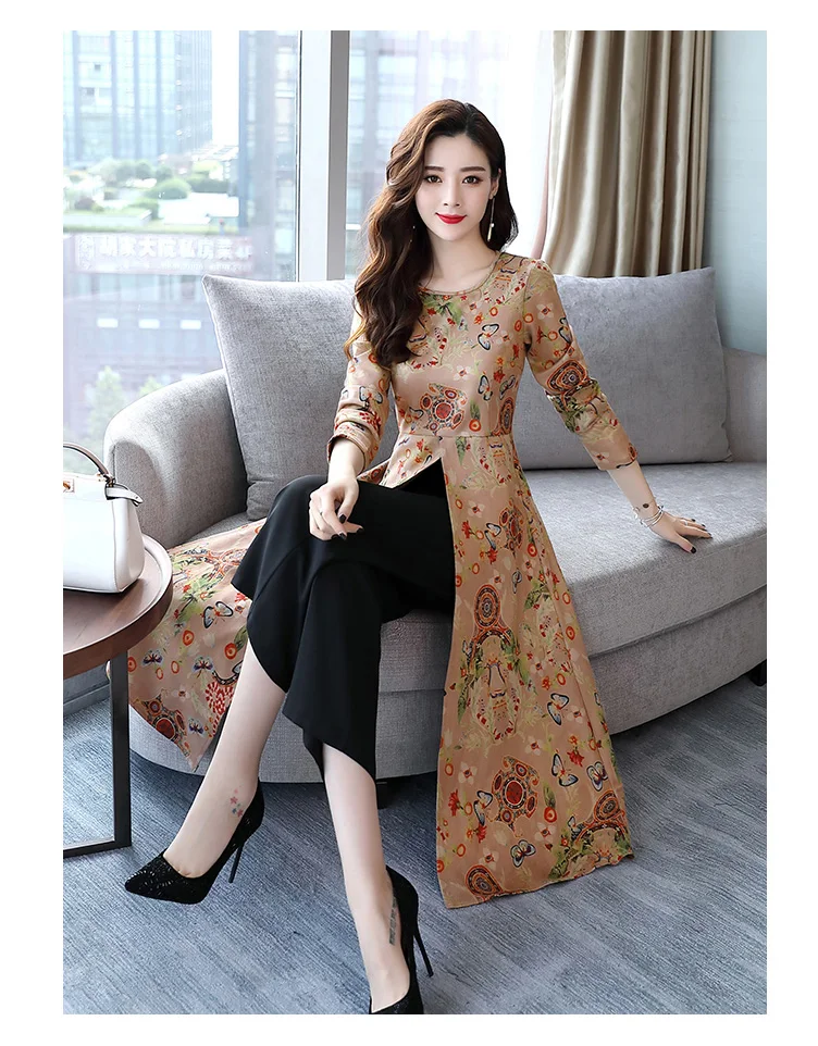 Цветочный принт, этнический комплект из двух предметов, темпераментный элегантный женский костюм, Классический женский костюм DC394 <