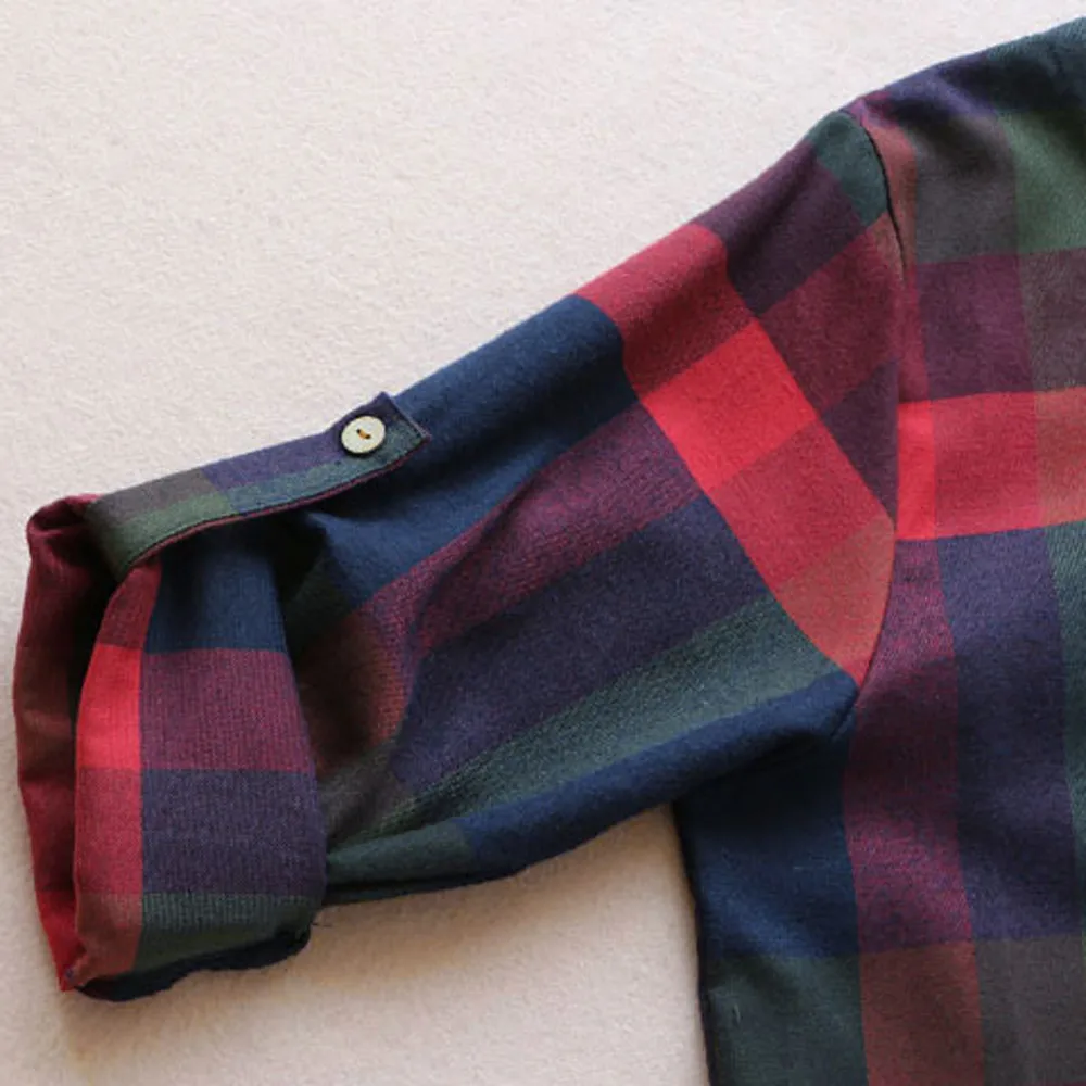 Женское клетчатое свободное винтажное платье с длинным рукавом и карманом