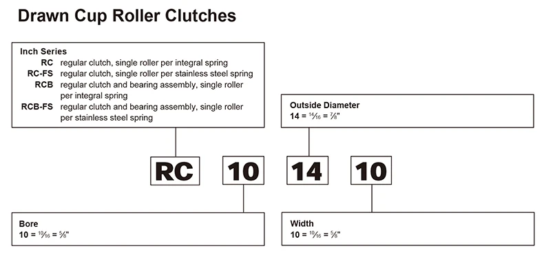 Размер изделия| Модель | Вес (г) | Размер | | Fw (мм) | D (мм) | C (мм) | Torgue Ma (нм) | | RC040708 | 3,5 | 6,35 | 11,112 | 12,7 | 1,9 | | RC040708-FS | 3,5 | 6,35 | 11,112 | 12,7 | 1,9 | | RC061008 | 4,7 | 9,525 | 15,875 | 12,7 | 4,83 | | RC061008-FC | 4,7 | 9,525 | 15,875 | 12,7 | 4,83 | | RC081208 | 9,2 | 12,7 | 19,05 | 12,7 | 7,9 | | RC081208-FS | 9,2 | 12,7 | 19,05 | 12,7 | 7,9 | | RC101410 | 14,5 | 15,875 | 22,225 | 15,88 | 15,4 | | RC101410-FC | 14,5 | 15,875 | 22,225 | 15,88 | 15,4 | | RC121610 | 17 | 19,05 | 25,4 | 15,88 | 20,9 | | RC121610-FS | 17 | 19,05 | 25,4 | 15,88 | 20,9 | | RC162110 | 16,2 | 25,4 | 33,338 | 15,88 | 45 | | RC162110-FC | 16,2 | 25,4 | 33,338 | 15,88 | 45 | | RCB061014 | 12 | 9,525 | 15,875 | 22,22 | 4,83 | | RCB061014-FS | 12 | 9,525 | 15,875 | 22,22 | 4,83 | | RCB081214 | 16 | 12,7 | 19,05 | 22,22 | 7,9 | | RCB081214-FC | 16 | 12,7 | 19,05 | 22,22 | 7,9 | | RCB101416 | 21,3 | 15,875 | 22,225 | 25,4 | 15,4 | | RCB101416-FS | 21,3 | 15,875 | 22,225 | 25,4 | 15,4 | | RCB121616 | 26,5 | 19,05 | 25,4 | 25,4 | 20,9 | | RCB121616-FC | 26,5 | 19,05 | 25,4 | 25,4 | 20,9 | | RCB162117 | 44,8 | 25,4 | 33,338 | 26,99 | 45 | | RCB162117-FS | 44,8 | 25,4 | 33,338 | 26,99 | 45 |