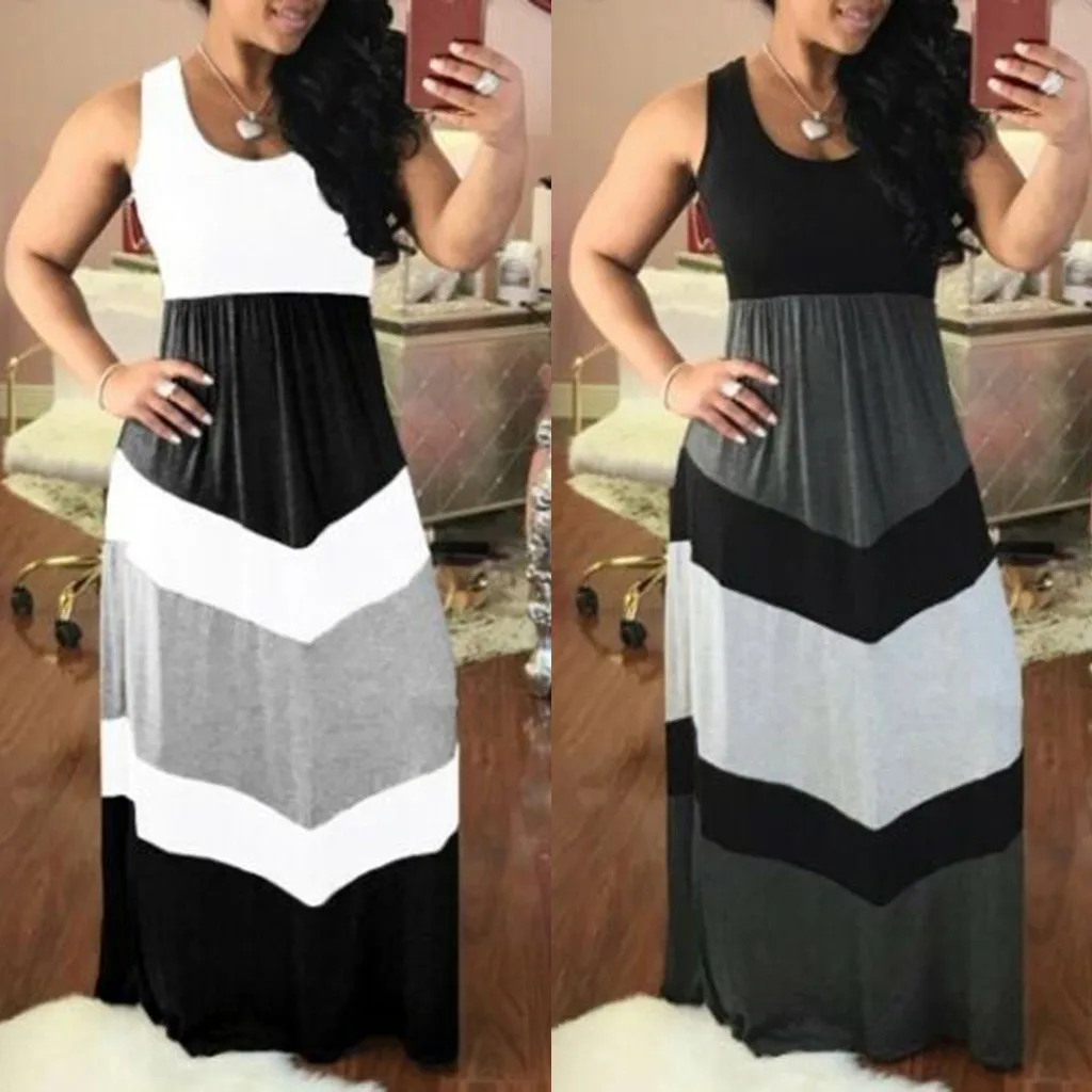 Женское Полосатое повседневное цветное платье с высокой талией макси длинное платье