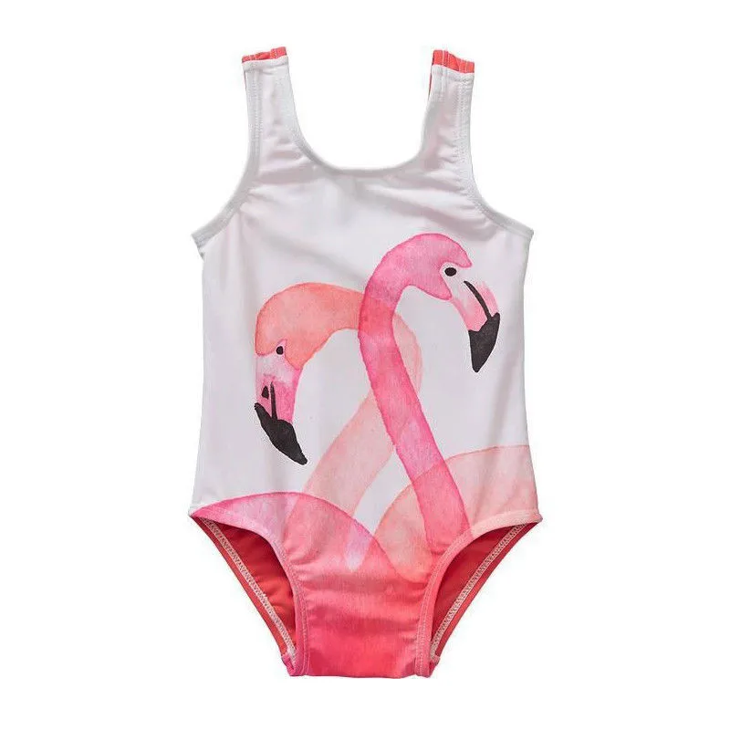 Новинка; детский купальник-бикини с принтом Фламинго; милый Цельный купальник для маленьких девочек; розовый цвет; купальный костюм без рукавов; Лидер продаж!