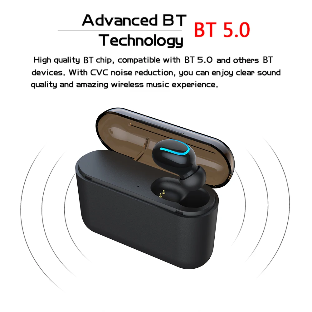 Технология BT 5,0 обеспечивает высокую скорость передачи данных, стабильное соединение и низкое энергопотребление. Встроенный HD микрофон обеспечивает четкий и аутентичный звук, с беспроводным дизайном одного уха, идеально подходит для автомобильных звонков или работы. Встроенный аккумулятор емкостью 50 мА · ч может заряжаться в зарядном корпусе емкостью 1500 мА · ч, поддерживая около 4 часов работы при полной зарядке. С usb-портом зарядная коробка с большим аккумулятором также может заряжать ваши смартфоны, планшетный ПК, MP3/MP4/MP5 и другие usb-устройства. Наушник с одним ухом достаточно маленький, чтобы быть невидимым, удобно носить в течение длительного времени, идеально подходит для занятий спортом.