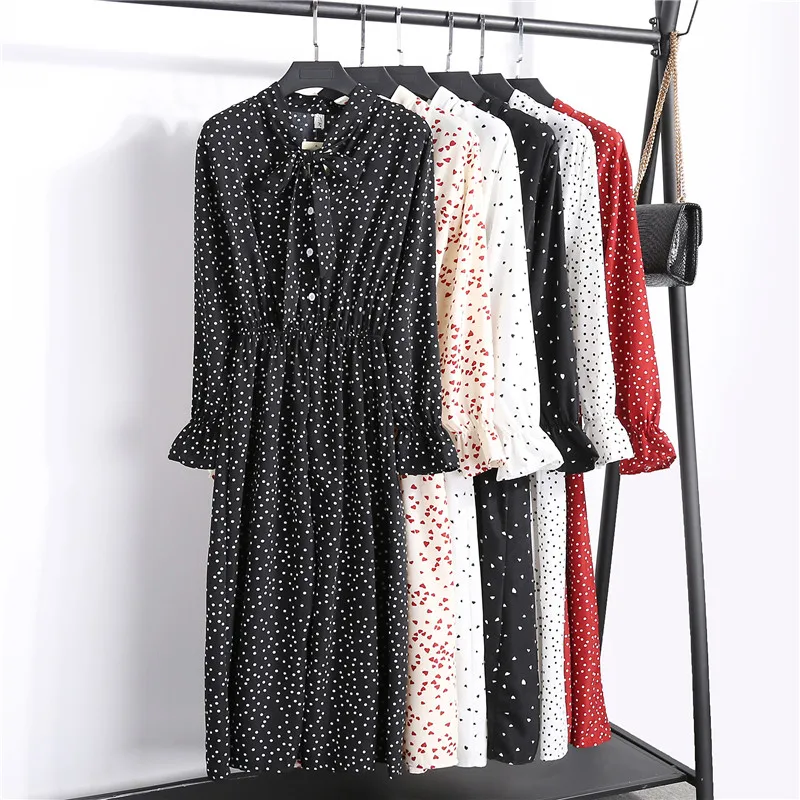 Женское шифоновое платье с длинным рукавом LYJMTDBK, Повседневное платье с высокой талией и бантом, весна-осень 2019