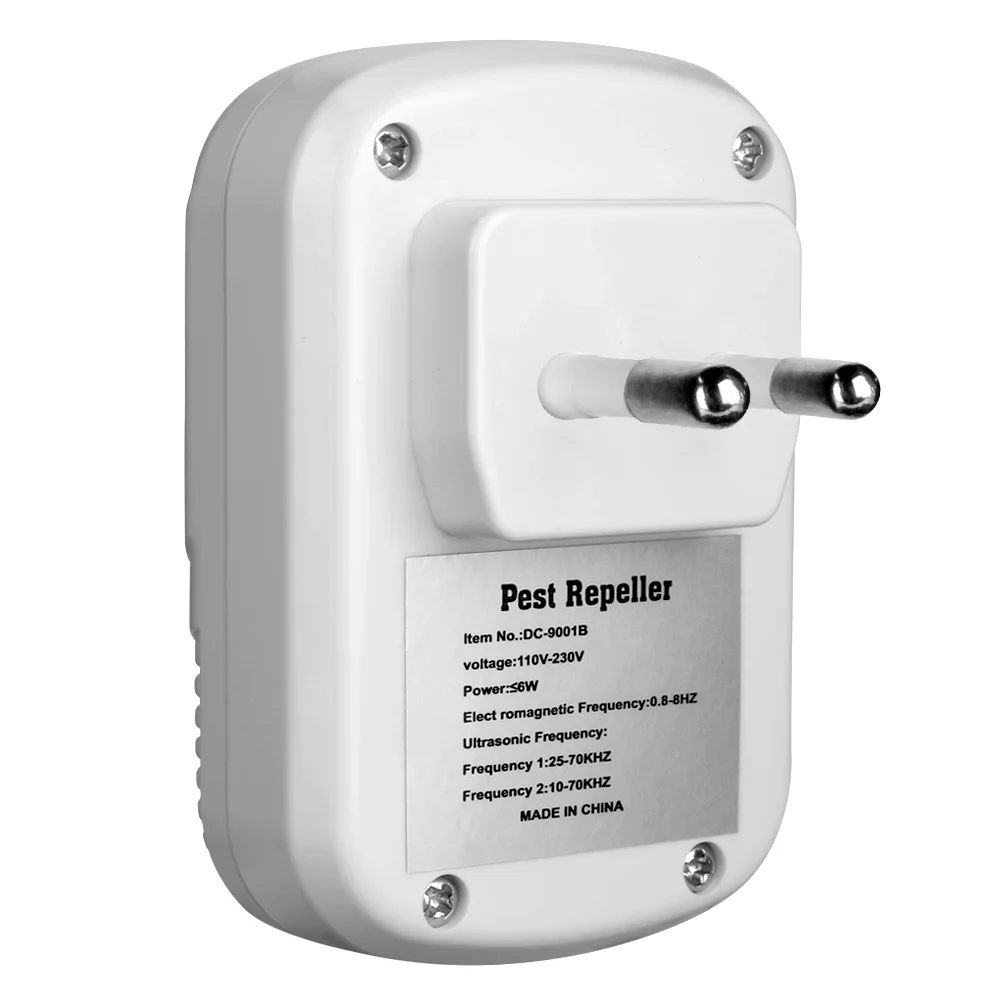 Особенности:Используйте физический метод, нетоксичный, без вреда для людей или домашних животных. Маленький размер не займет много места.Частота ультразвуковой волны и электромагнитной волны меняется периодически и постоянно, поэтому мыши и насекомые не будут адаптироваться к определенной фиксированной частоте.Мощный: Эффективный диапазон защиты составляет около 150 квадратных метров под открытым небом.С Ночной светильник, мягкий и теплый синий светодиодный светильник может защитить ваши глаза от внезапного раздражения сильный светильник в полночь.В основном применяется для отпугивания мышей, комаров и тараканов, также может использоваться для отпугивания и управления другими вредителями, такими как пауки, муравьи, жуки и т. д.Спецификация:Материал: АБС-пластикЦвет изделия: белыйНапряжение: AC100-230VЧастота: 50-60 ГцСредняя потребляемая мощность: ≤ 6 ВтЧастота ультразвуковой волны: 1 полоса: 25-70 кГц; 2 диапазона: 10-70 кГцДиапазон частот электромагнитных волн: 0,8-8 ГцЭффективный диапазон: около 150 квадратных метров (в открытой среде)Рабочая температура: 0-40 °/32-104FРазмер: 9 см x 6 см x 3 см (Д x Ш x В)Вес брутто: 85 гТип штепсельной вилки: штепсельная вилка стандарта США/штепсельная вилка европейского стандарта (опционально)Посылка включает в себя:1 х электронный отпугиватель вредителейТеплые советы:1. Эта машина должна быть установлена на расстоянии 20-80 сантиметров от пола. И должны быть вертикально на пол и подключите к розетке питания.2. Точки установки следует избегать от ковров, штор и т. Д. Крепления звукового материала. В противном случае снижение звукового давления нанесет вред эффекту helminthes.3. Не очищайте машину от сильной забеременевшей, воды или влажной ткани. Для очистки машины Используйте сухую и мягкую ткань с некоторыми нойтерами.4. Не роняйте машину и не наносите на нее сильный удар.5. Чтобы увеличить эффект, вы должны использовать несколько устройств на складах или в нескольких комнатах.6. Внимание: влагостойкий, водонепроницаемый.