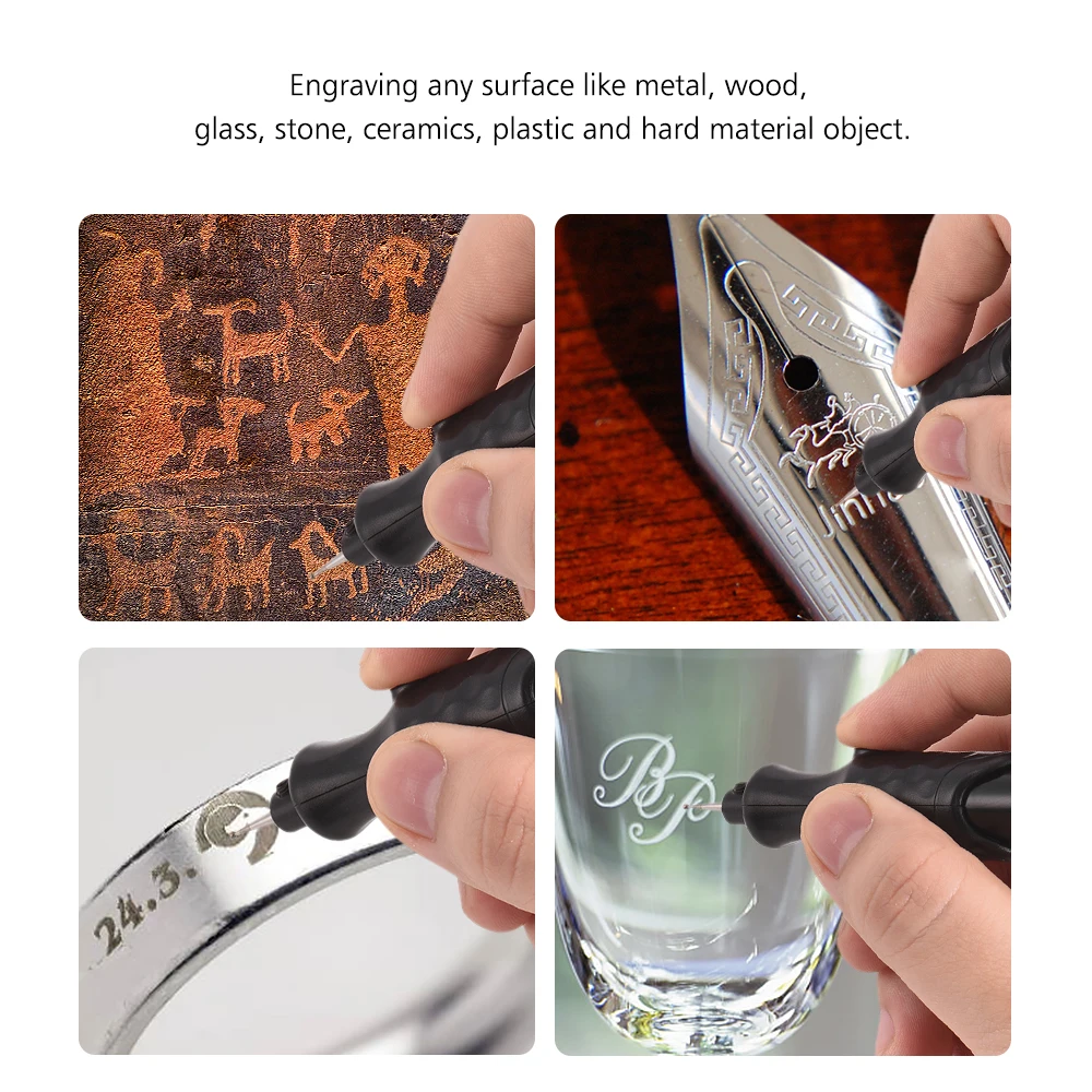 【Гравировка любого профиля 】:Гравировальная ручка имеет японский двигатель, который может достигать 23000 об/мин, что позволяет гравировать на поверхности металла, дерева, стекла, камня, керамики и твердых материалов.
