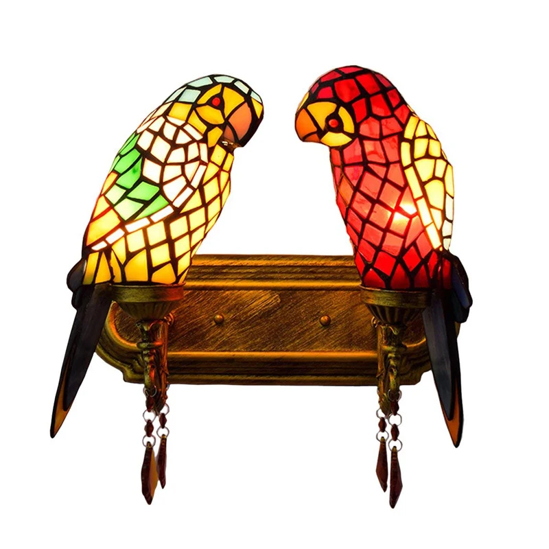 SGROW 2 головки настенный светильник Tiffany освещение для помещений приспособления ручной работы стекло попугай абажур лампы для спальни прохода коридора