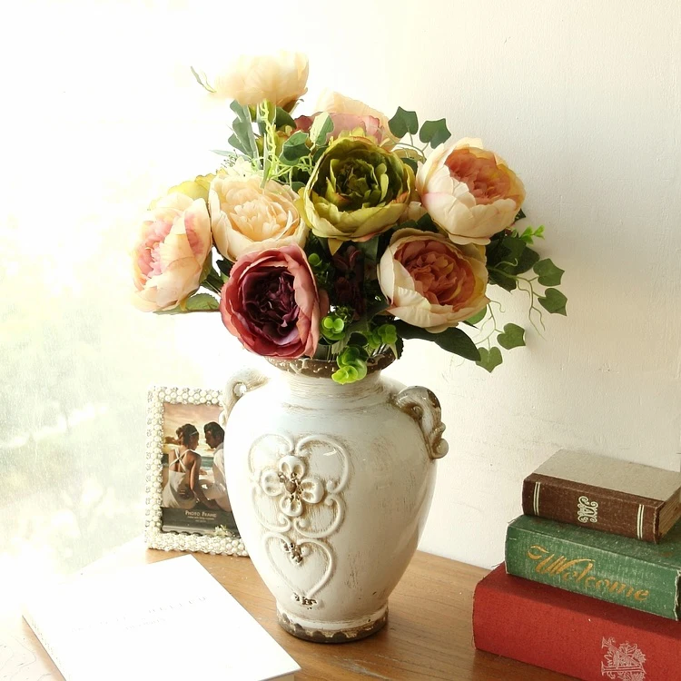 Американский и Европейский классический Средиземноморский старый толстый горшок керамическая Гостевая Настольная Ваза для ресторана украшение цветка ремесло украшения