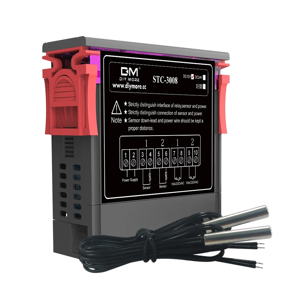 STC-3008 двойной цифровой регулятор температуры с двумя релейными выходами 12 В 24 220
