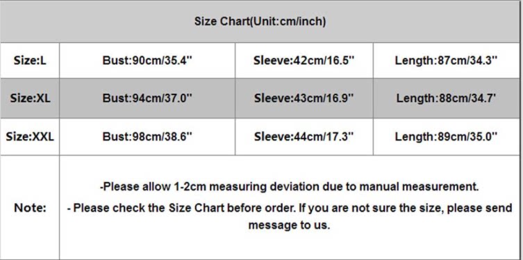 1. 1 дюйм = 2,54 см. Пожалуйста, следуйте таблице размеров, чтобы выбрать правильный размер. Не выбирайте напрямую свои привычки. Размер может отличаться на 2-3 см из-за ручного измерения.