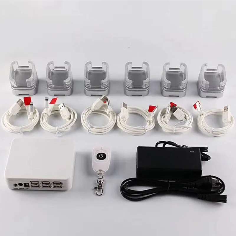 6 портов мобильный розничный магазин противоугонная система безопасности дисплея сотового телефона с сигнализацией и зарядкой для iphone android USB Type C