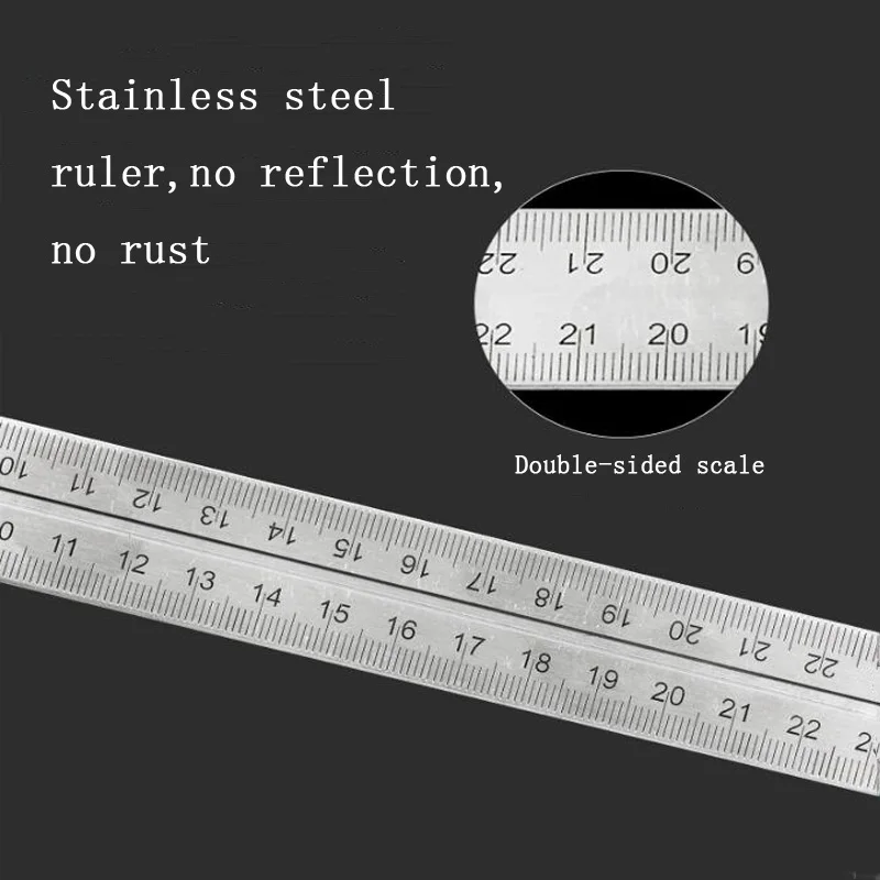 Независимый горизонтальный с пузырем для горизонтального, вертикального, 45 градусов скоса Линейка из нержавеющей стали, двухсторонняя Лазерная шкала, более очевидная, без отражения, без ржавчины Угловое сиденье затягивающей гайки может регулировать Угловое сиденье и стальную линейку, чтобы быть плотным; Высококачественное Угловое сиденье из алюминиевого сплава, высокая коррозионная стойкость и долговечность Линейная лента может использоваться отдельно, мощная и простая в использовании. Широко применяется для всех видов измерений в жизни, DIY ручной работы, школьного обучения, профессиональных плотников, декоративной промышленности Спецификация: Диапазон измерения: 0-300 мм Выпускное значение: 1 мм Точность: 1 мм Технология поверхности: лазерный процесс Материал линейки: нержавеющая сталь Материал угловой рамы: алюминиевый сплав Размер: 300*25*1,5 мм Размер угловой рамки: 103*73*14 мм Материал: нержавеющая сталь, алюминиевый сплав