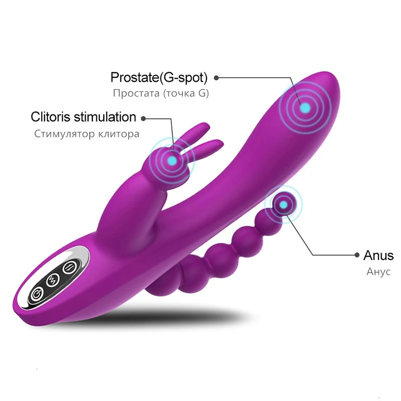 Эргономичный дизайн с тройной вибрацией (G-spot/простата, анус, Стимуляция клитора)