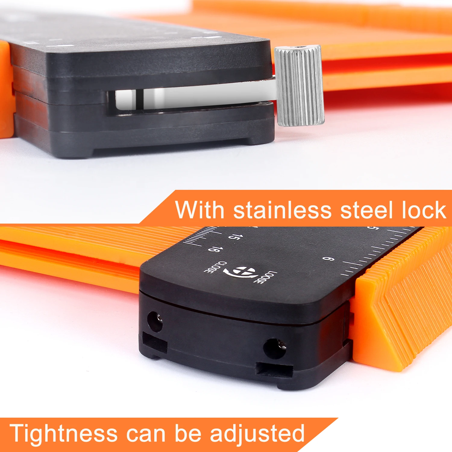 [Широкое применение] инструмент для контурного профиля, разработанный в подарочной коробке, идеально подходит для установки плитки, ламината, ковра, формования, проверки размеров и т. д. Ps: кроме измерения внутреннего треугольника. Принесет нам много удобства в нашей жизни. Отличный классный гаджет для DIY-ers!