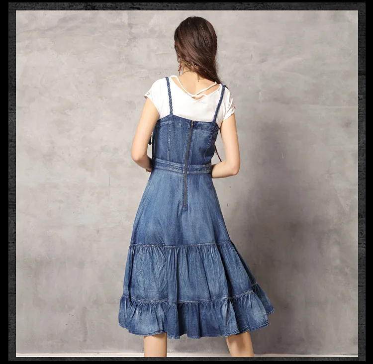 | Женское джинсовое платье на бретелях, винтажное джинсовое платье с вышивкой, лето 82155, 2019 | Ткань: 100% хлопок | |||||